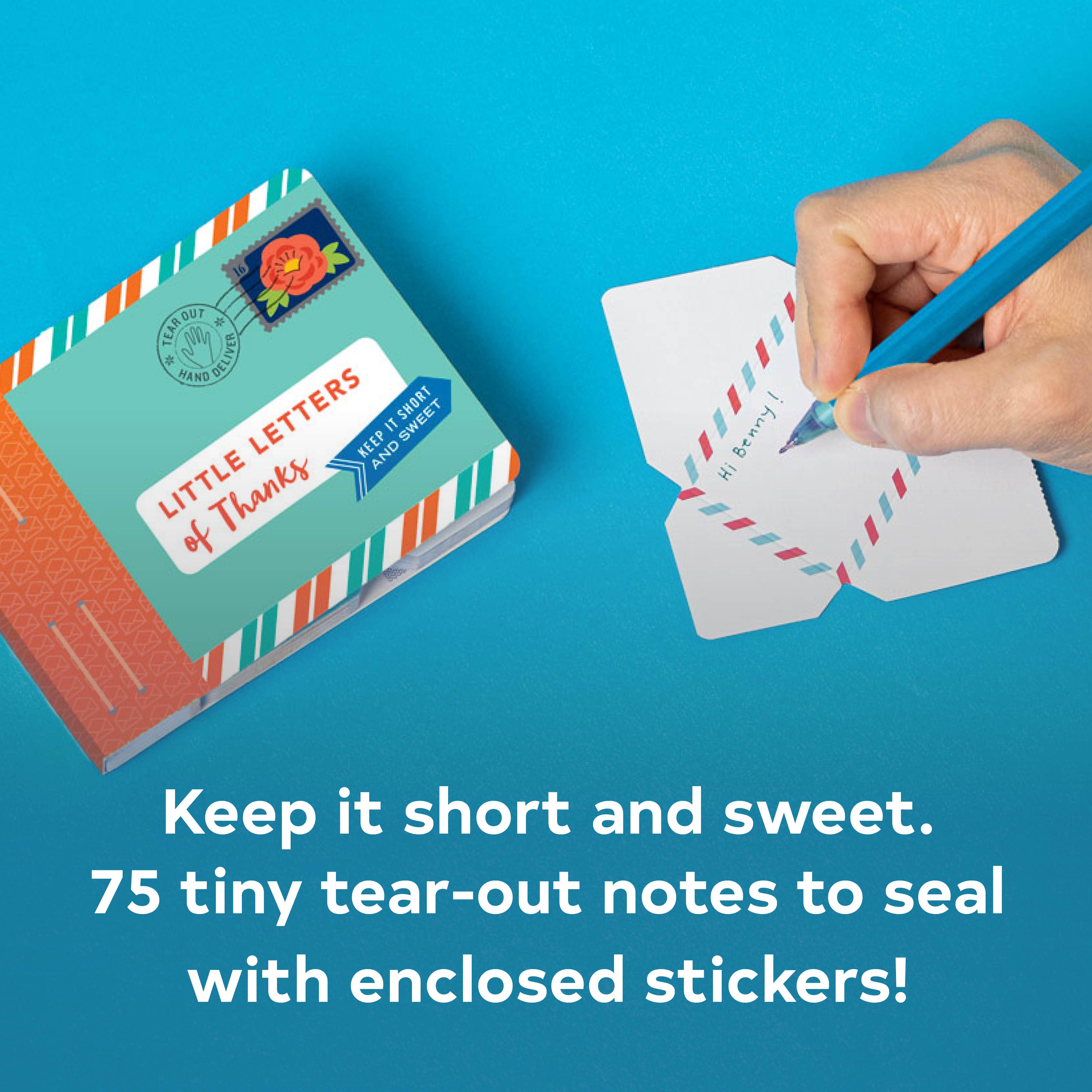 These 75 tiny tear-out letters are perfect for expressing gratitude. Simply fold into adorably small envelopes and seal with the enclosed stickers to create the perfect way to show your friend, child, coworker, bus driver, barista, neighbor, teacher, or hero how much you care.