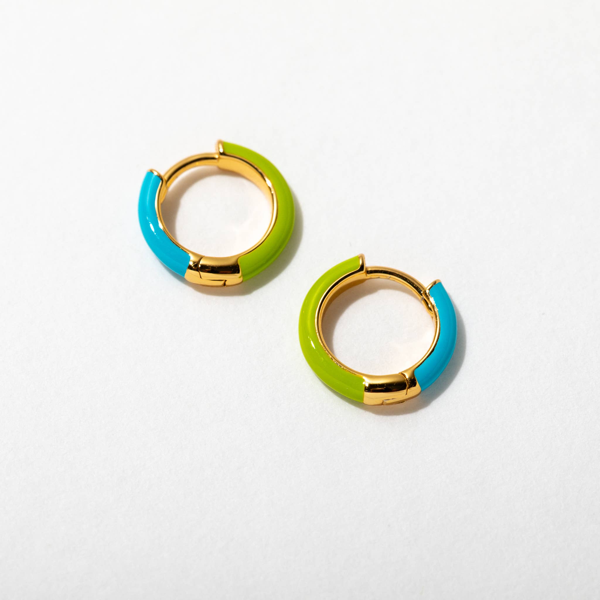 Mix it up with these reversible huggies. DETAILS - 18k gold plated sterling silver with enamel - Infinity style hinged closure - Includes e-coat: scratch, tarnish, and water-resistant. Nickel-free and naturally hypoallergenic - Measures 0.9 cm x 0.9 cm